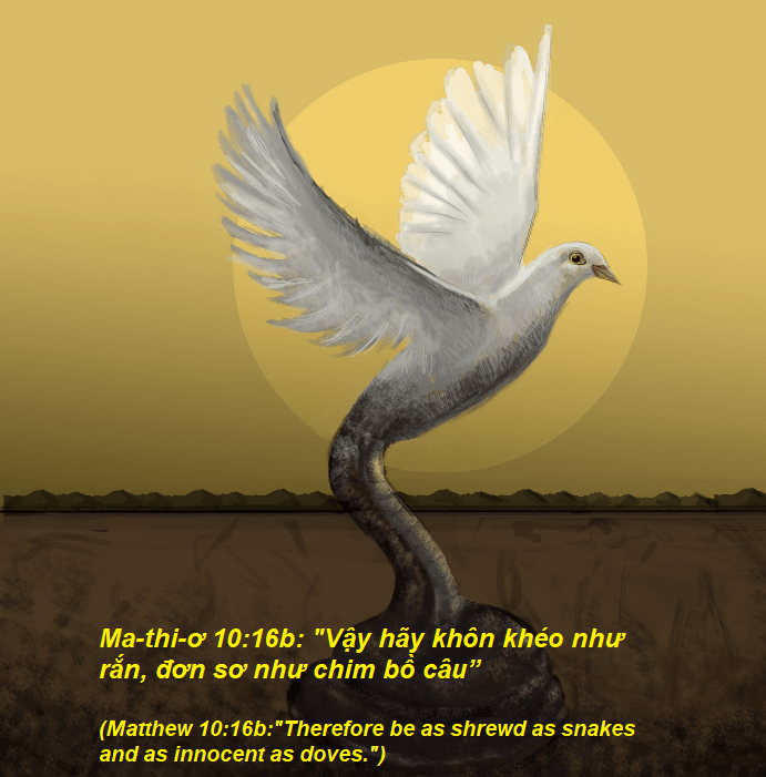 Ma-thi-ơ 10:16 “Nầy, Ta sai các con đi như chiên giữa bầy muông sói. Vậy hãy khôn khéo như rắn, đơn sơ như chim bồ câu”