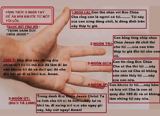 6-Bạn hãy chấp nhận tội nầy_________của tô tông ông bà hai bên nội ngoại từ 4 đời trước như là tội của bạn làm, xong ăn năn trở lại từ đầu làm theo cách 5 ngón tay trở lại đuổi tà linh cho đến khi chugns đi ra khỏi bạn.