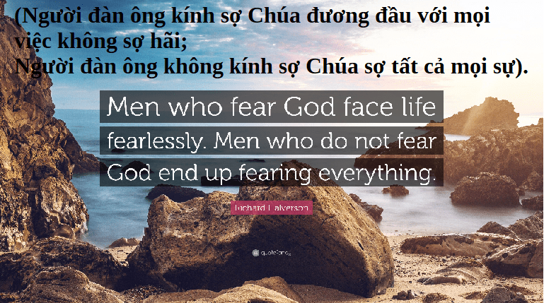 -Loài người nhìn bề ngoài nhưng Đức Giê Hô Va nhìn thấy trong lòng. Hãy có tấm lòng bao dung quãn đại như Chúa Jesus, không ích kỷ, nhỏ nhoi, moi móc chuyện linh tinh. Hãy it nói, vì người đàn ông nói nhiều là người tánh đàn bà bị ảnh hưởng của người mẹ, không ai ưa, làm tổn thương người khác. Khi nóng tính thì hãy im miệng lại, không nói nhiều lời. Khi thấy người khác không vui thì ngậm miệng mình lại.