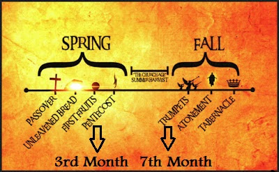 Trẻ em Y-sơ-ra-ên tổ chức Lễ Hiện xuống vào ngày 15 của tháng thứ ba và sau đó họ quan sát khoảng thời gian bốn tháng, được kết thúc bằng lễ kỷ niệm Lễ Kèn vào tháng thứ bảy.