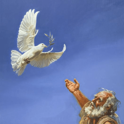 Bạn yêu dấu, khi Nô-ê muốn biết liệu Trận lụt có lắng xuống hay không, ông đã mở cửa sổ và đưa một con chim bồ câu ra ngoài. Con chim bồ câu rời đi và đến với một chiếc lá cây ô liu trên mỏ của nó. Con chim bồ câu gửi chiếc lá vào chiếc tàu. Và trong lần tái hiện thứ hai, Nô-ê sai con chim bồ câu đi và con chim bồ câu bỏ đi không quay lại.