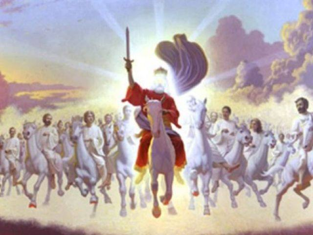 Chúa Giê-su từ trời xuống ngựa trắng và tiêu diệt vô số binh lính và dân chúng đang muốn tấn công Y-sơ-ra-ên. Những người lính này có vũ khí hủy diệt lớn và đã bị giết. Chúa Giê-xu vừa nói và lời của Ngài đã trở thành một thanh gươm sắc bén bắn tan mọi kẻ thù của Y-sơ-ra-ên.