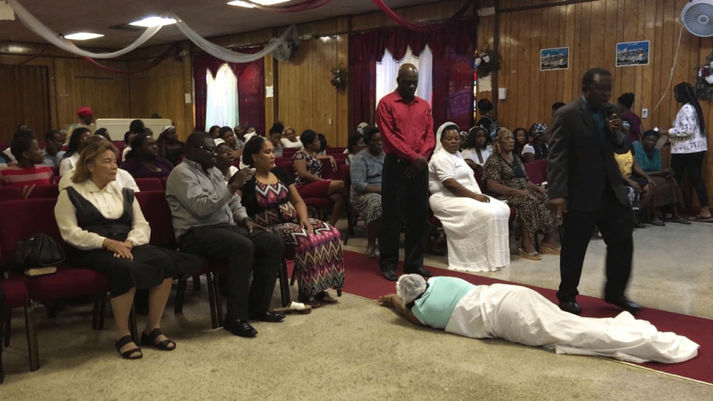 Những người theo đạo Chúa đã cầu nguyện cho tôi cho đến khi tôi được giải thoát hoàn toàn, nhưng tôi phải nhịn ăn để họ cầu nguyện cho tôi để con rắn rồng sáu đầu xuất hiện. Con rồng này đã nhập vào tôi trong khi nhập môn khi bà tôi bắt tôi ăn trái tim bị nghiền nát của một người đàn ông.