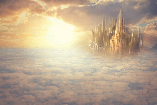 Tôi đang bay lên không gian với tốc độ rất nhanh và chúng tôi đã vượt qua mặt trăng và ngay sau đó tôi nhìn thấy một thành phố lớn rực rỡ ánh sáng. Có một cánh cổng lớn. Tôi thấy rằng Thành phố Vàng rực rỡ và rực rỡ này có một hội trường rực rỡ và tỏa sáng với ánh hào quang rực rỡ và rực rỡ. Có những tia sáng chiếu ra từ thành phố rực rỡ này và bao phủ vùng biên giới của thành phố.