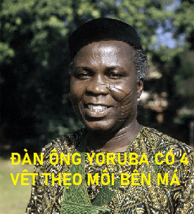 Anh ta có màu vàng và có các dấu vết trên khuôn mặt giống như một người đàn ông Yoruba. Có bốn vết trên má này và bốn vết khác ở má bên kia.