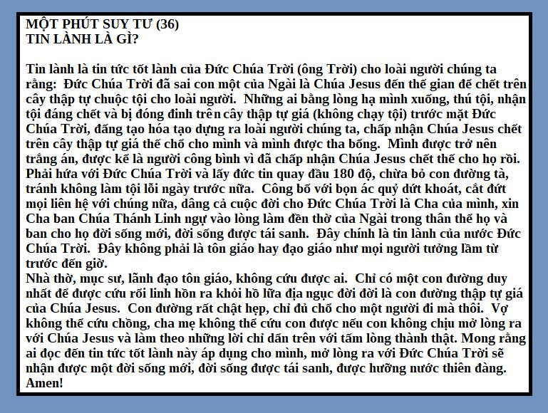 BÀI SỐ 36: TIN LÀNH LÀ GÌ?