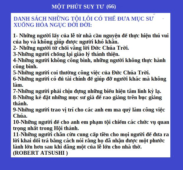 BÀI SỐ 66: DANH SÁCH NHỮNG TỘI LỖI CÓ THỂ ĐƯA MỤC SƯ XUỐNG HỎA NGỤC ĐỜI ĐỜI
