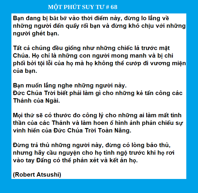 Lukewarm Christian for so many years, anointed by God for a special ministry for waking up and setting free all sleeping and lazy Christians from all forces of evil from this world to come back to God as warriors preparing for the second coming of our Lord Jesus Christ like in the ancient times, the Israelite being delivered from Pharaoh's slavery . Each person can stand up on their own spiritual feet and fight back against the evil spirits harming them by calling The Name of Jesus after he/she will regain spiritual strength by following the instructions on the booklet " DỌN SẠCH LÒNG ĐỂ GẶP ĐỨC CHÚA CHA". The articles in this blog are like Manna and Living Waters that the readers should read and put into application from the article number 1 to number 70 in order to recover all of the spiritual strength and ready to escape from the slavery of evil spirits to freedom in Jesus 's Name as it was promised by our Father God. Manna and Living Waters articles have been proven to make spiritual life-changing situations for so many people already in the past, when will be your turn? You will be glad you find this website because it is a gift from God to all of His beloved children. View all posts by Moses Doan