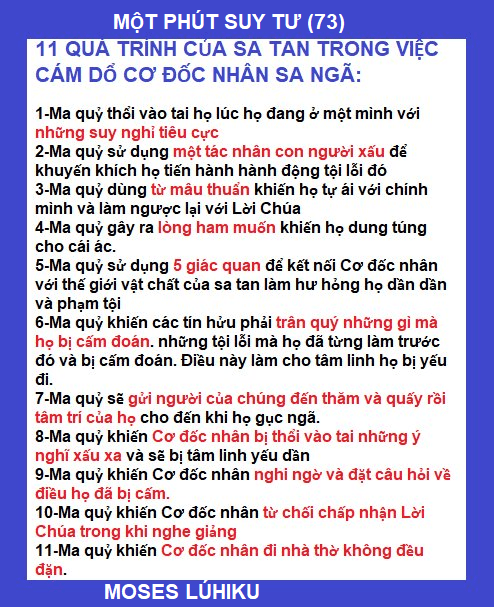 BÀI SỐ 73: 11 QUÁ TRÌNH SA TAN CÁM DỔ CƠ ĐỐC NHÂN SA NGÃ