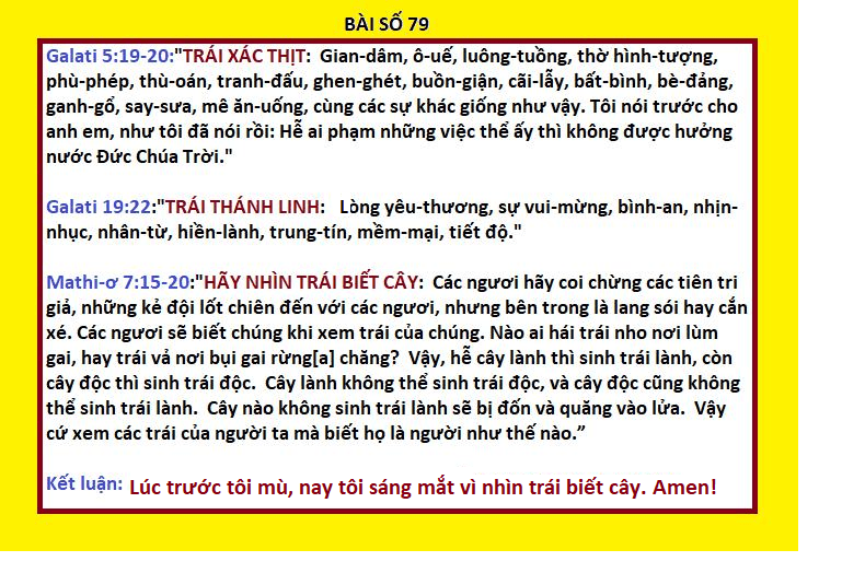 BÀI SỐ 79: TRÁI XÁC THỊT VÀ TRÁI THÁNH LINH