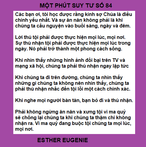 PHẢI KHÔNG NGỪNG ĂN NĂN VÀ XƯNG TỘI VÌ MA QUỶ SẼ CHỐNG LẠI CHÚNG TA KHI CHÚNG TA THẬM CHÍ KHÔNG NHẬN RA. VÌ MA QUỶ ĐANG BUỘC TỘI CHÚNG TA MỌI LÚC MỌI NƠI.