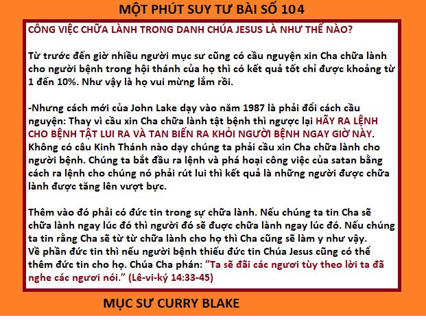 BÀI SỐ 104: CÔNG VIỆC CHỮA LÀNH TRONG DANH CHÚA JESUS LÀ NHƯ THẾ NÀO?