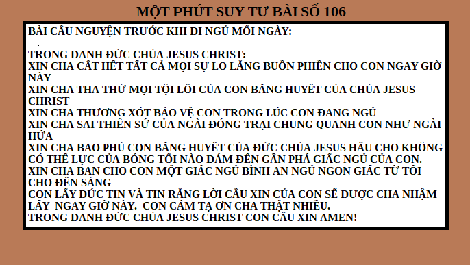 BÀI SỐ 106: BÀI SẦU NGUYỆN TRƯỚC KHI ĐI NGỦ MỔI NGÀY