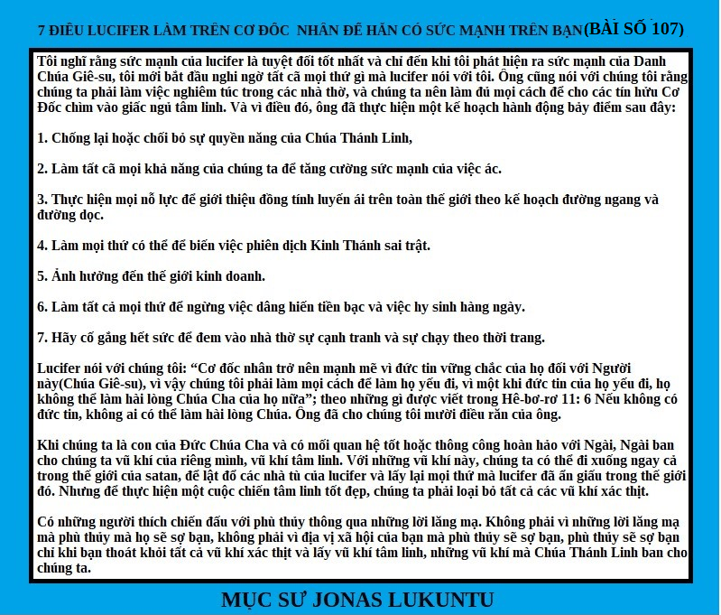 BÀI SỐ 107: 7 ĐIỀU LUCIFER LÀM TRÊN CƠ ĐỐC NHÂN ĐỂ HẮN CÓ SỨC MẠNH TRÊN BẠN