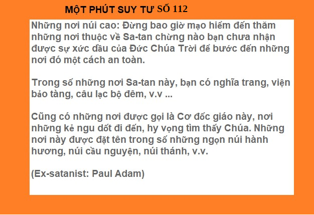 BÀI SỐ 112: ĐỪNG ĐẾN NƠI THUỘC VỀ SA TAN NƠI NÚI CAO