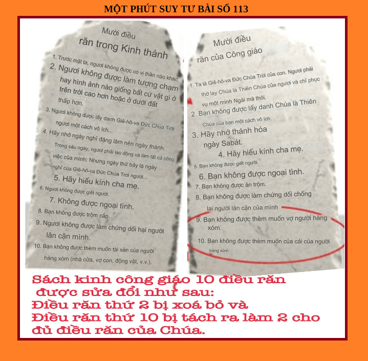 BÀI SỐ 113: 10 ĐIỀU RĂN CỦA CÔNG GIÁO BỊ SỬA ĐỔI