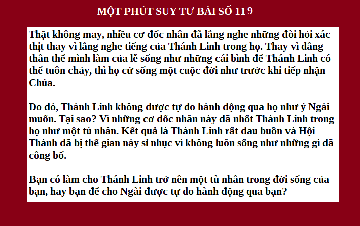 BÀI SỐ 119: NHIỀU NGƯỜI NHỐT THÁNH LINH TRONG HỌ NHƯ MỘT TÙ NHÂN