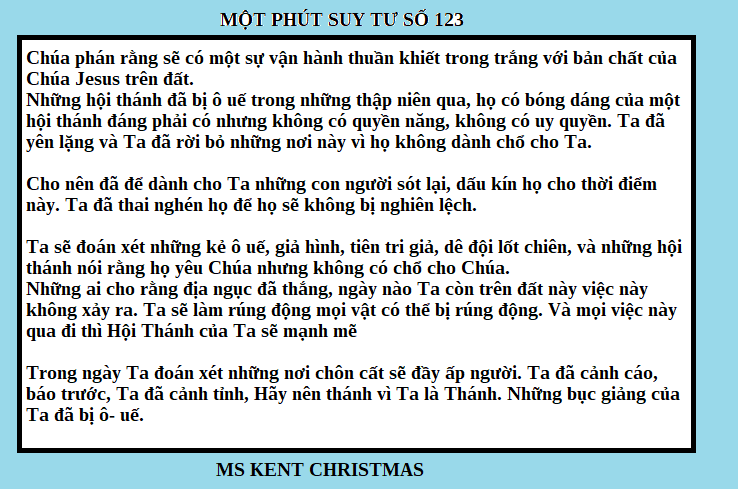 BÀI SỐ 123: SẼ CÓ MỘT SỰ VẬN HÀNH THÁNH KHIẾT CỦA CHÚA JESUS TRÊN ĐẤT