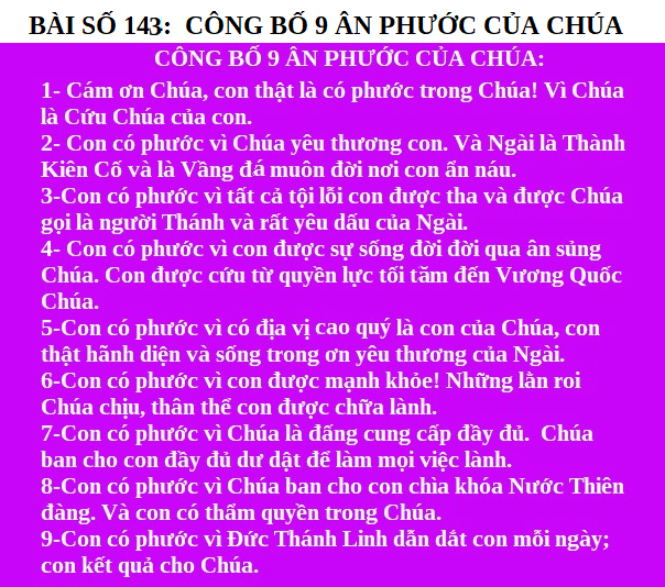BÀI SỐ 143: CÔNG BỐ 9 ÂN PHƯỚC CỦA CHÚA: