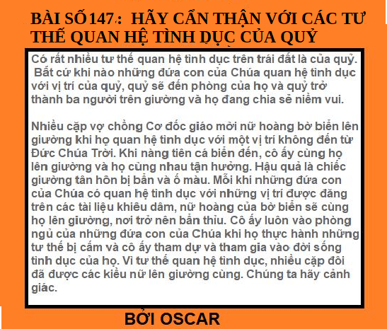 BÀI SỐ 147: HÃY CẨN THẬN VỚI CÁC TƯ THẾ QUAN HỆ TÌNH DỤC CỦA QUỶ