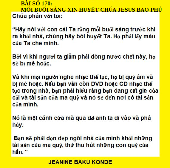 BÀI SỐ 170: MỖI BUỔI SÁNG XIN HUYẾT CHÚA JESUS BAO PHỦ.