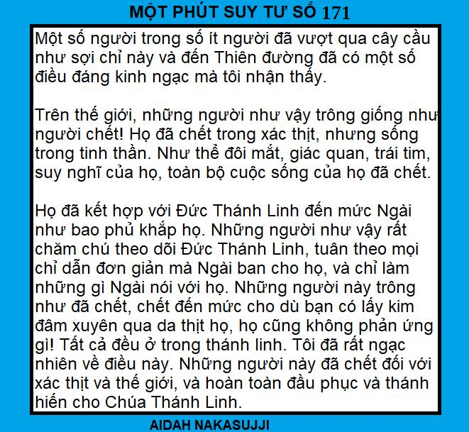 MỘT PHÚT SUY TƯ SỐ 171: NHỮNG NGƯỜI ĐÃ CHẾT TRONG XÁC THỊT VÌ THÁNH LINH: