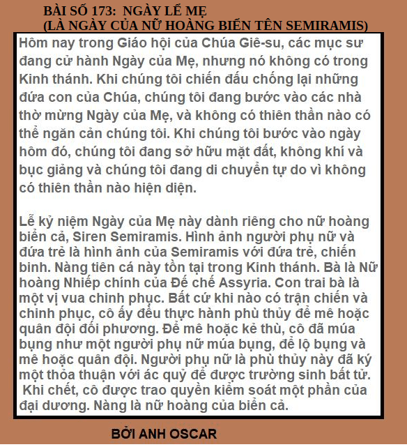 BÀI SỐ 173: NGÀY LỂ MẸ LÀ NGÀY CỦA NỮ HOÀNG BIỂN TÊN SEMIRAMIS