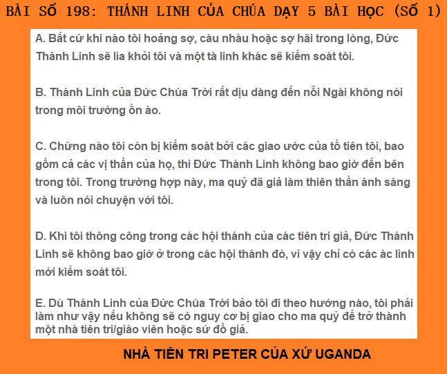 BÀI SỐ 198: THÁNH LINH CỦA CHÚA CHỈ DẠY TÔI 5 BÀI HỌC NHƯ SAU: