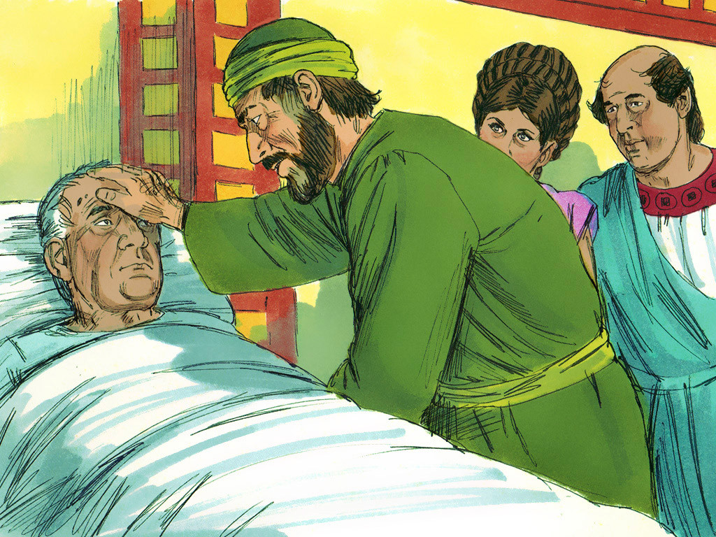 Người ta lấy cái khăn và cái áo của ông đã bận vào người để trên các kẻ đau yếu thì họ được lành bệnh và được cứu khỏi quỷ dữ. Đây là công việc đầu tiên của Đức Chúa Giê-xu tỏ ra cho người dân ngoại để họ thấy được quyền năng của Thánh Linh Ngài.