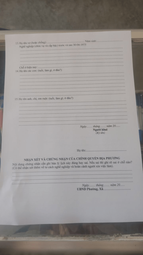 BÊN VIỆT NAM KHÔNG LÀM THỊ THỰC CHỬ KÝ NHƯ BÊN MỸ NHƯNG HIỆN NAY CÁC BẠN ĐI RA ỦY BAN CÔNG CHỨNG TẠI PHƯỜNG VÀ XIN HỌ LÀM TỜ ĐƠN SƠ YẾU LÝ LỊCH IN SẲN TẠI VĂN PHÒNG CỦA HỌ. BẠN CÓ THỂ ĐẾN TRẢ TIỀN KHOẢNG 30-40 NGÀN ĐỒNG VÀ XIN HỌ LÀM CHO TỜ ĐƠN NÀY 2 BẢN CŨNG TỐT GỒM CÓ CHỬ KÝ CỦA BẠN VÀ CÓ CHỬ KÝ CỦA NGƯỜI CÔNG CHỨNG OK . TÔI KÈM THEO ĐÂY TỜ GIẤY NHƯ THẾ NÀY DƯỚI ĐÂY NHÉ CÁC BẠN VÀ BẠN CỨ KÈM THEO TỜ ĐƠN SỐ 3 NÀY CŨNG OK.