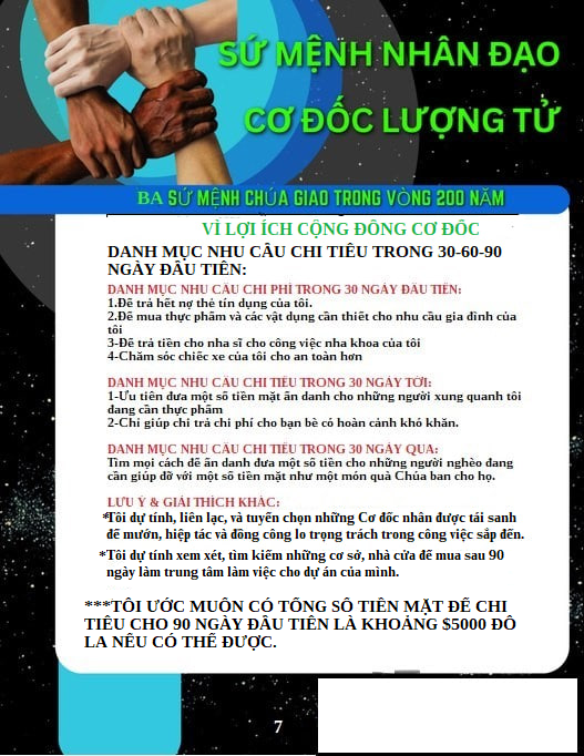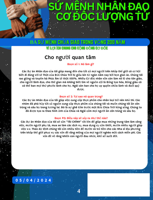 CHƯƠNG TRÌNH THIỆN NGUYỆN TRONG THẾ GIỚI MỚI CHO CƠ ĐỐC NHÂN ĐƯỢC TÁI SANH VÀ CHO NHỮNG AI TIN ĐÂY LÀ SỰ THẬT SẮP XẢY RA, KHÔNG ẢO TƯỠNG. TỔNG THỐNG TRUMP TUYÊN BỐ ĐÈN XANH CHO NESARA/GESARA RỒI CÁC BẠN NHÉ! ÔNG CÔNG BỐ AI LÀM CÔNG VIỆC PHƯỚC THIỆN SẼ ĐƯỢC BAN PHƯỚC DỒI DÀO!